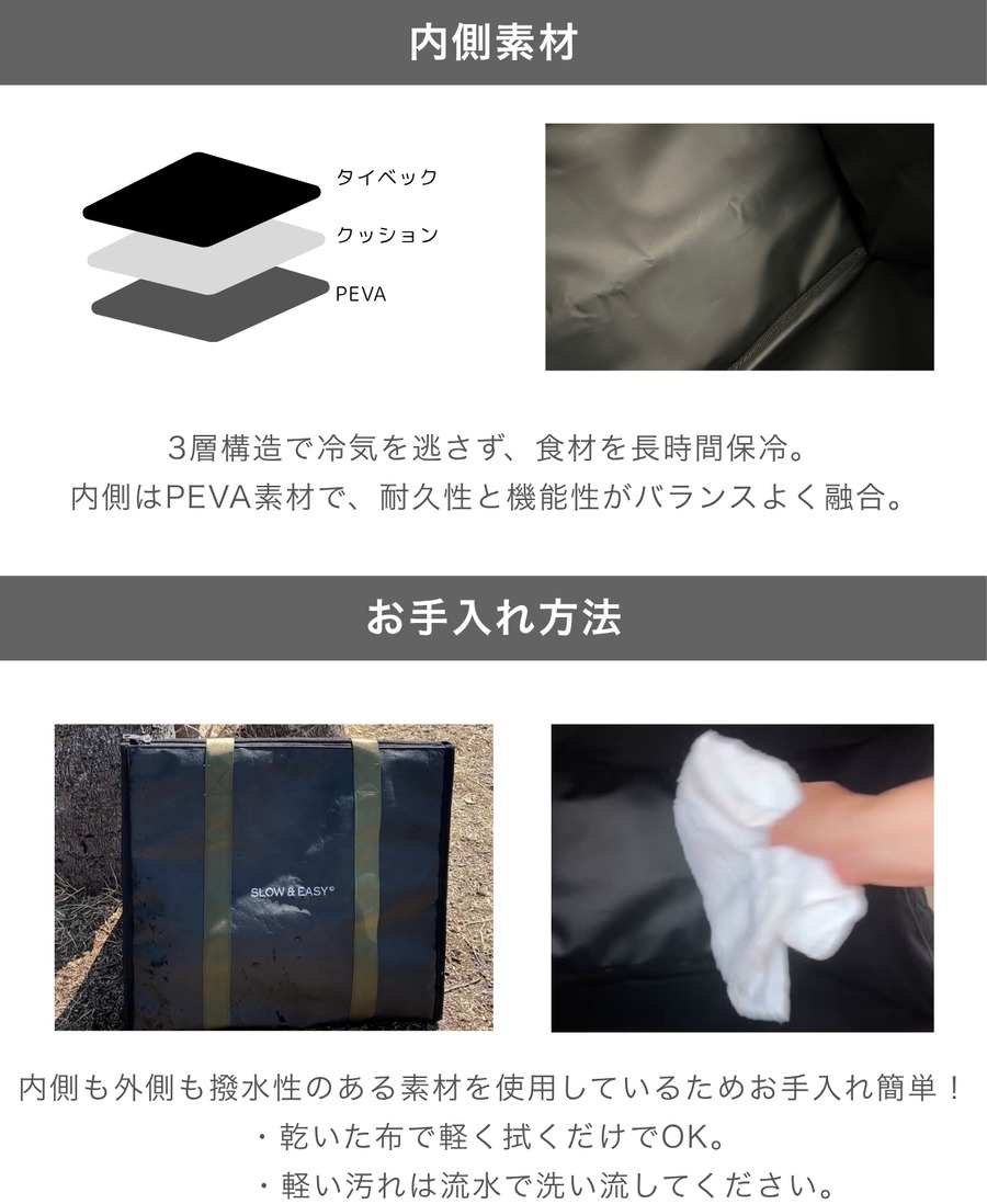 内側はアルミ蒸着構造で、保冷剤との併用でより高い冷却効果を発揮。