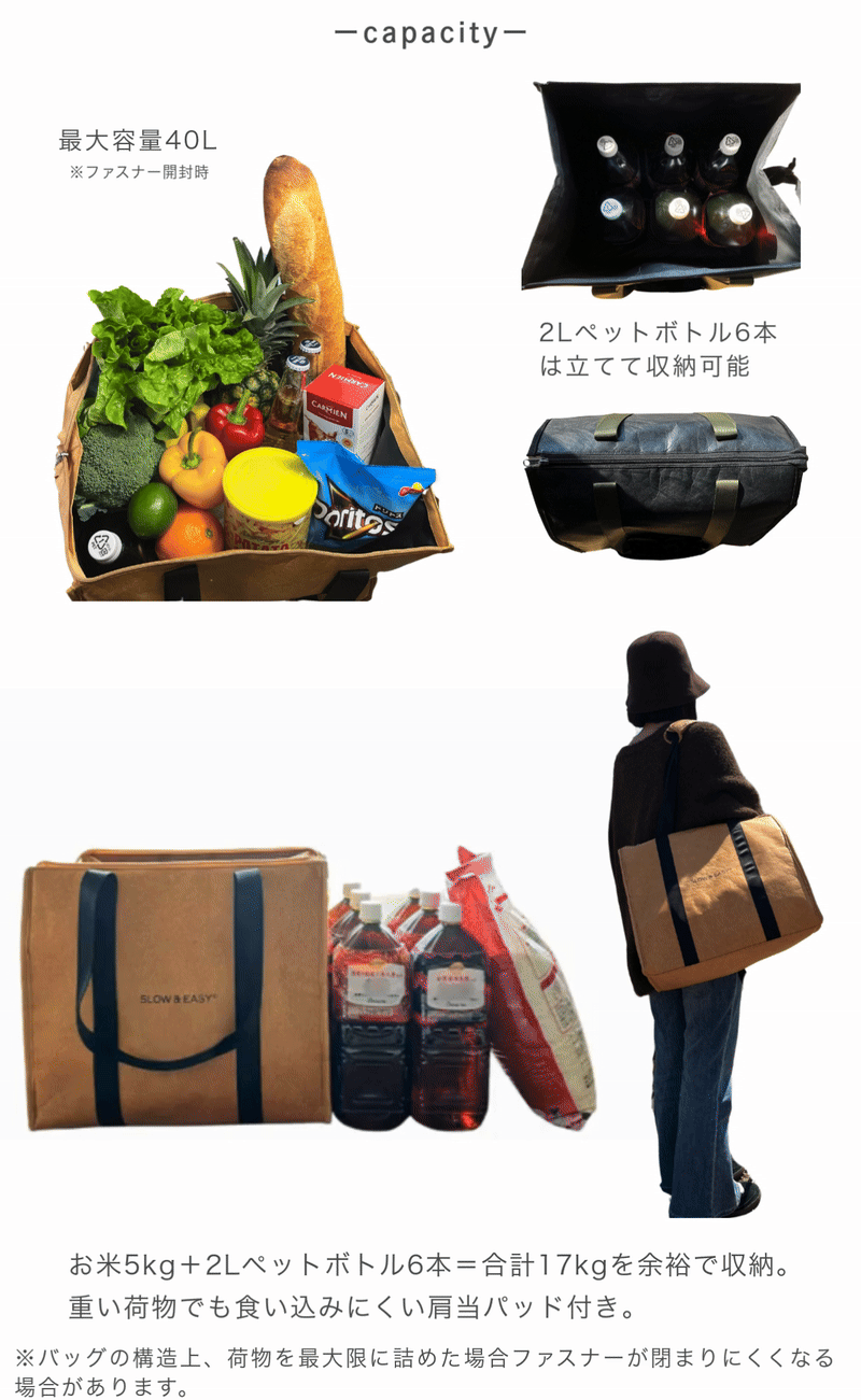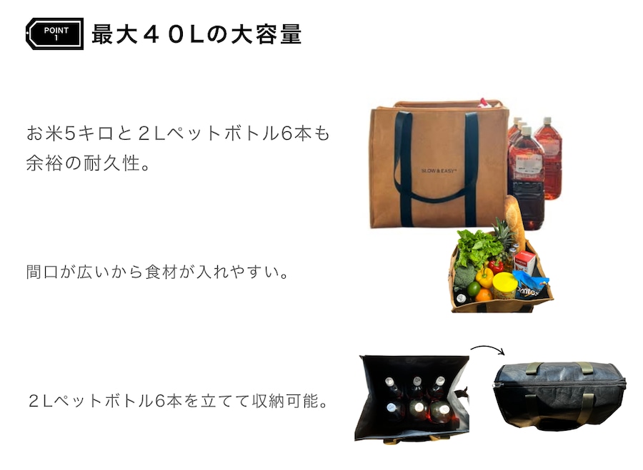 家族での買い出しからBBQ、キャンプ、ピクニックまで幅広く使える大容量40Lサイズです。