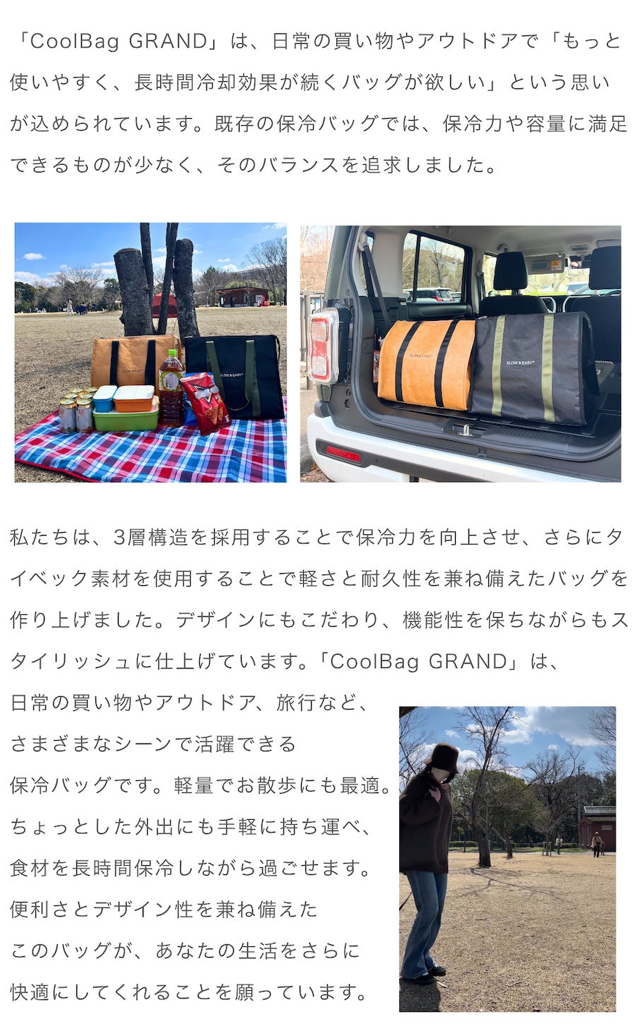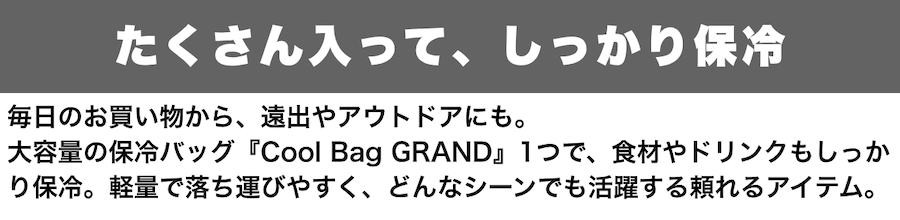 「CoolBag GRAND」は、最大10時間の保冷力を誇るアウトドア対応モデル。